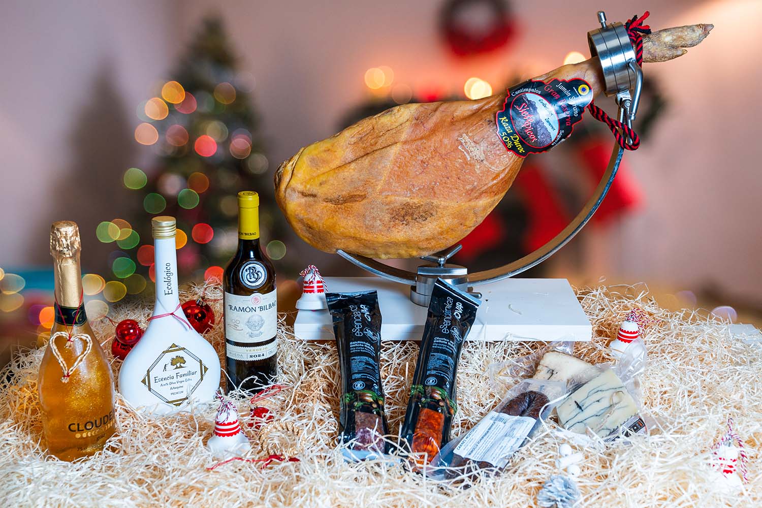 Un lote que nace del campo y reúne lo mejor de nuestra tierra. El sabor del jamón DUROC, los matices únicos de los quesos de trufa y ajo negro, y la autenticidad del chorizo, salchichón y morcilla ibéricos se unen al carácter de nuestro AOVE y al brindis con vino tinto Ramón Bilbao y vino espumoso.