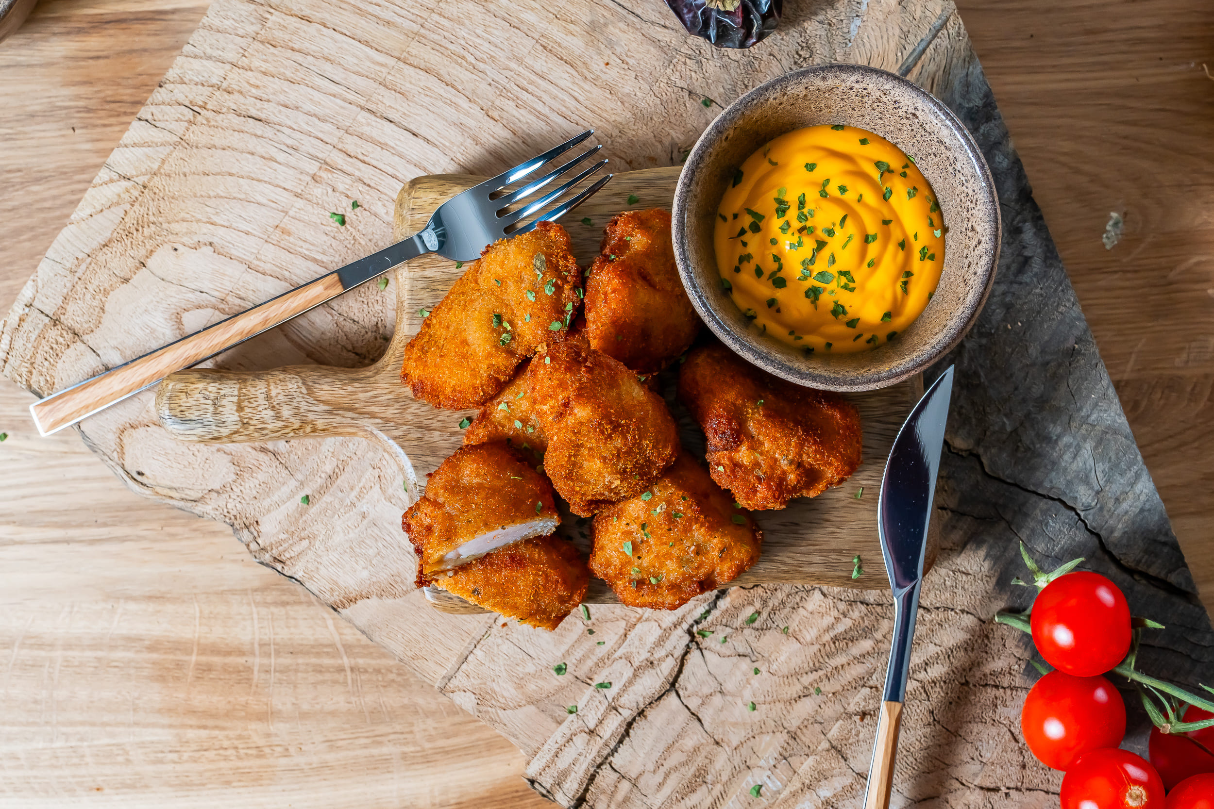 Nuestras lagrimitas de pollo precocinadas elevan una elaboración conocida a una experiencia gastronómica clara: textura dorada y crujiente al exterior, interior tierno y jugoso. Elaboradas con pechuga de pollo seleccionada y empanado ligero, ofrecen un equilibrio perfecto entre sabor y tacto.