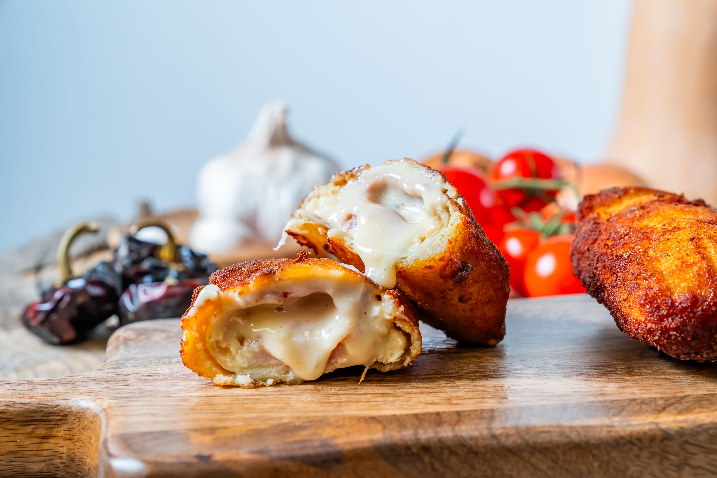 Freír durante 3–4 minutos en abundante aceite a 170–190 °C, hasta obtener un acabado dorado y crujiente.