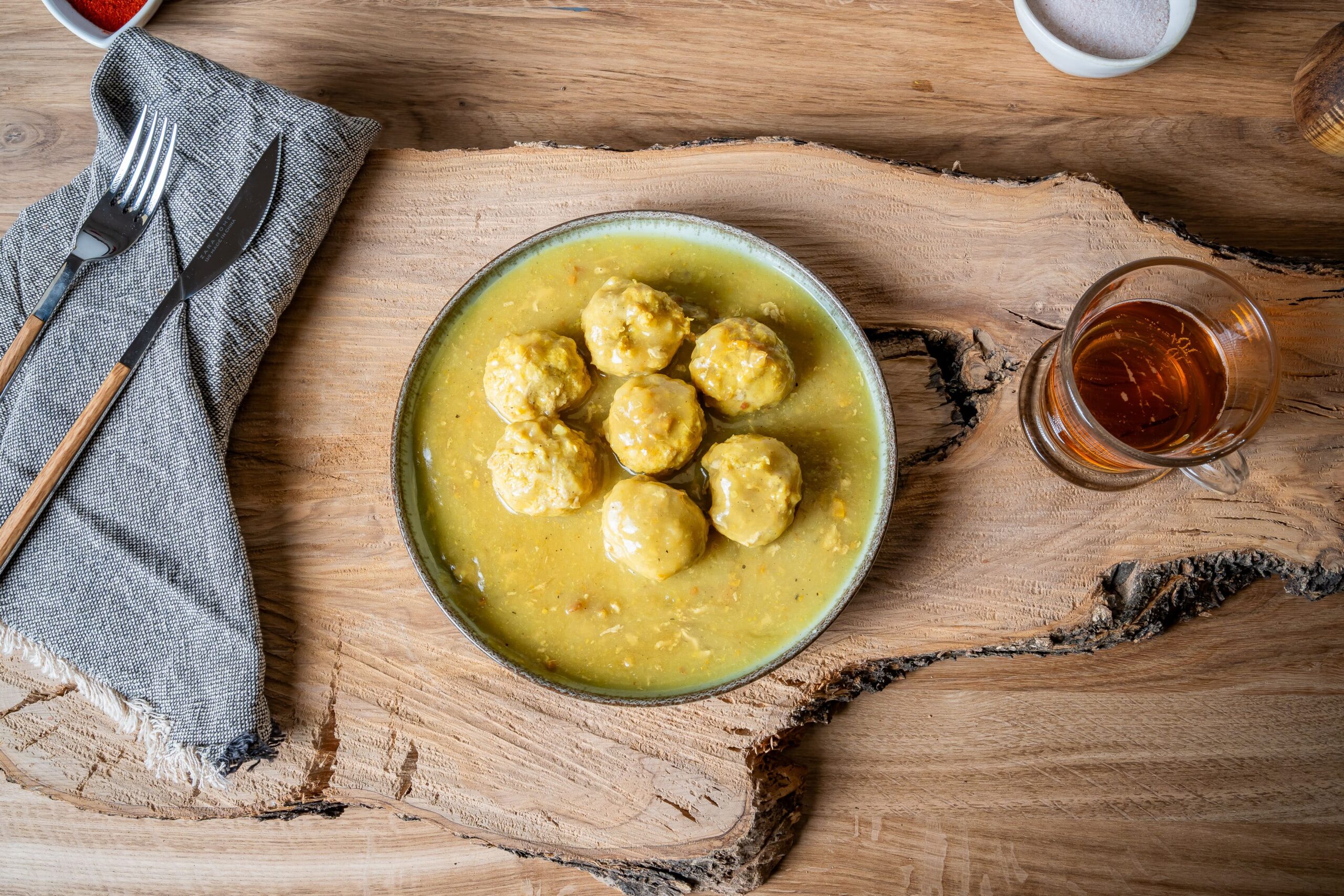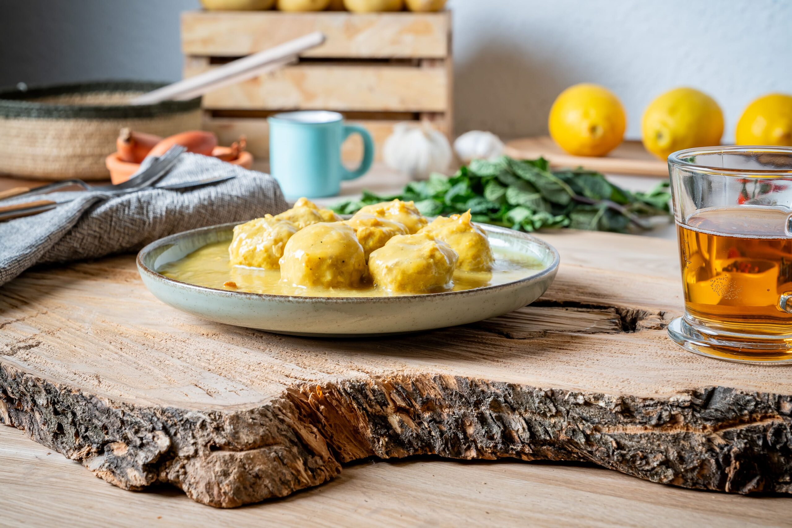 Estas albóndigas se cocinan lentamente en una salsa suave de tomate y vino blanco, dejando que los sabores se mezclen de forma natural hasta lograr una textura tierna y un sabor redondo.
