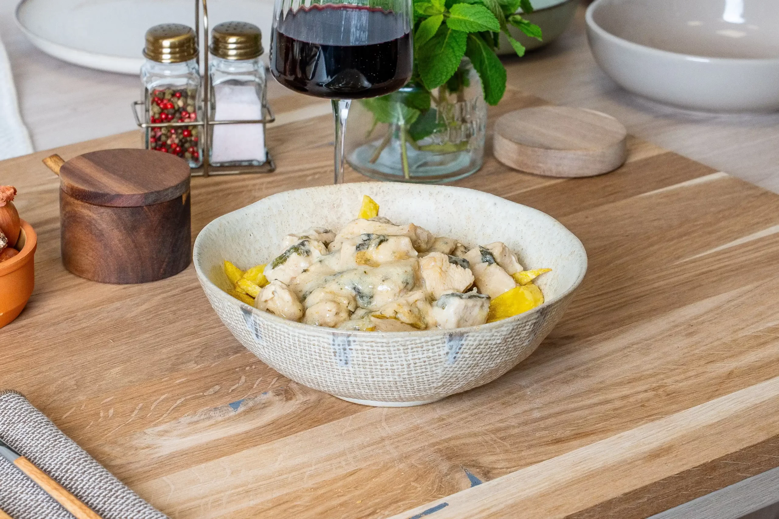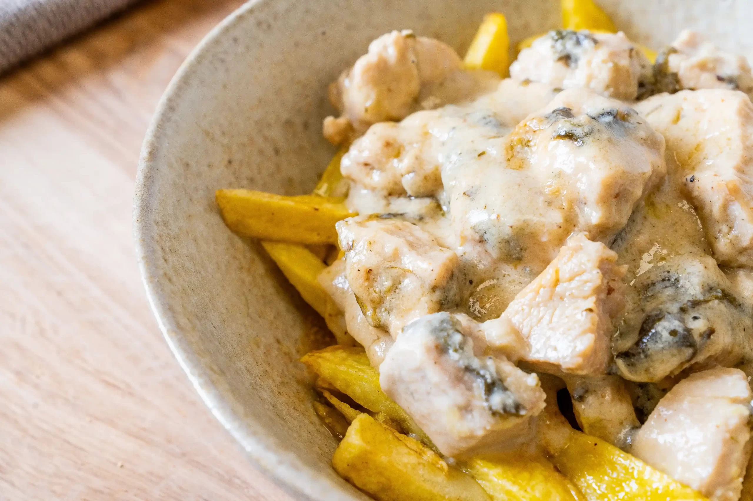 Nuestro pollo al roquefort con espinacas une la suavidad del pollo fresco de proximidad con la cremosidad del queso roquefort y el toque vegetal de espinacas frescas, creando una receta llena de carácter y sabor.