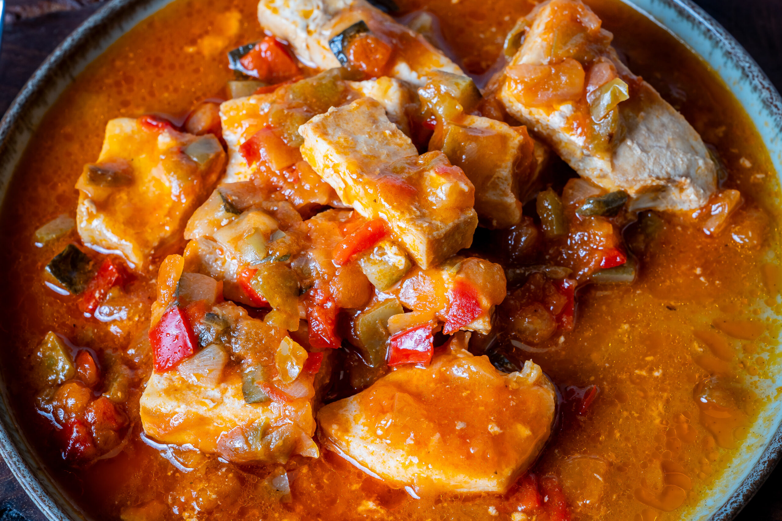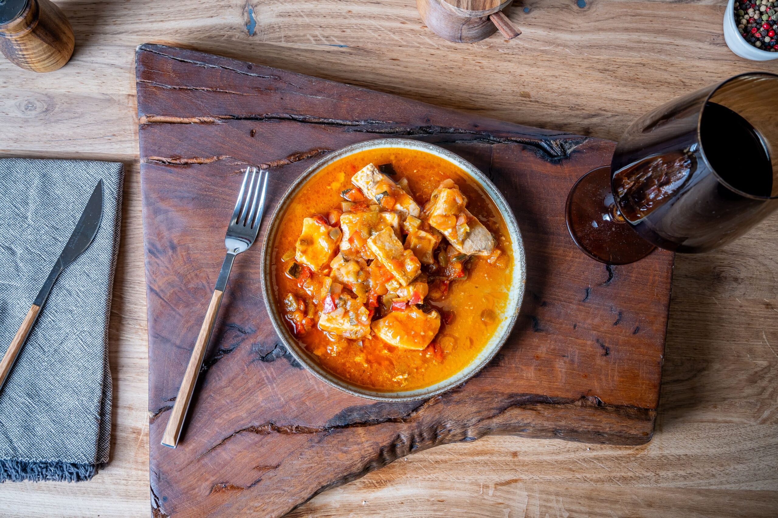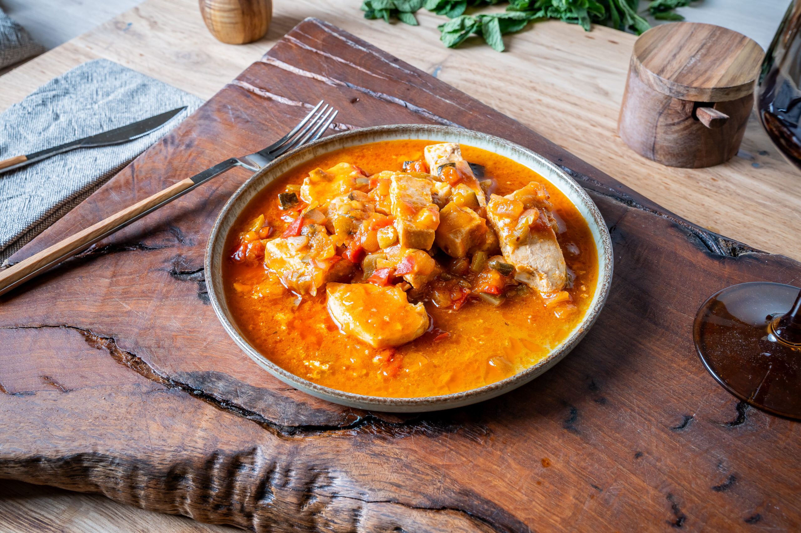 Producto listo para calentar y servir, elaborado con pescado fresco y vegetales de proximidad en AOVE ecológico.